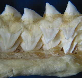 De fleste hajfund fra Gram leret bestr dog af tnder, der stadig, nu 6 millioner r efter at de har siddet i en hajkbe, er skarpe og glatte. Oftest finder man enkelte tnder i leret, tnder der sandsynligvis er faldet ud, nr en haj har hevet og flnset i et bytte. |
